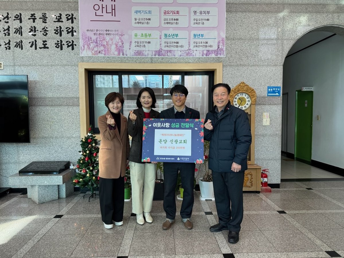 [충청중심뉴스] 온양신광교회는 지난 4일 ‘희망2026나눔캠페인’에 성금 200만 원을 기탁했다.