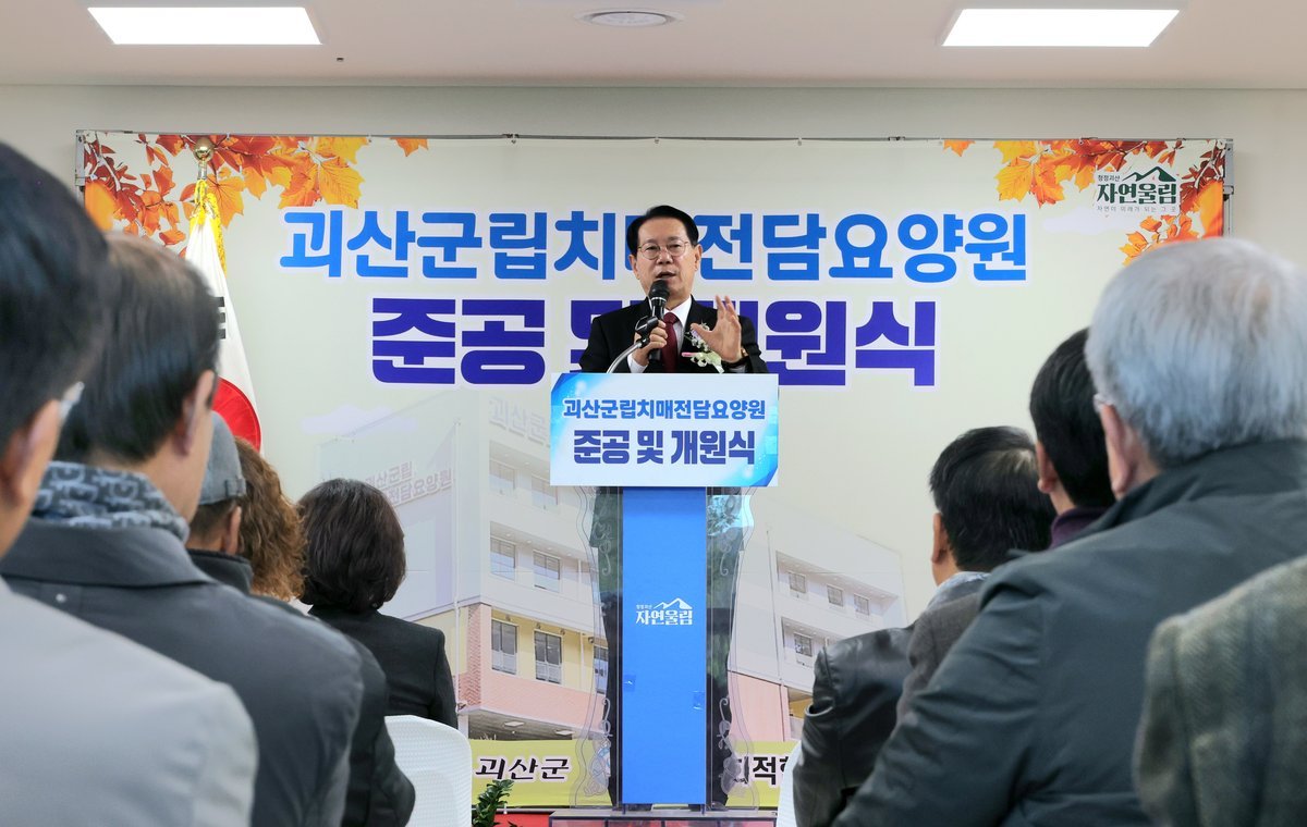 괴산군립치매전담요양원은 총사업비 76억 원을 투입해 지하 1층, 지상 3층, 연면적 1868㎡ 규모로 건립됐으며 최대 30명을 수용할 수 있다.