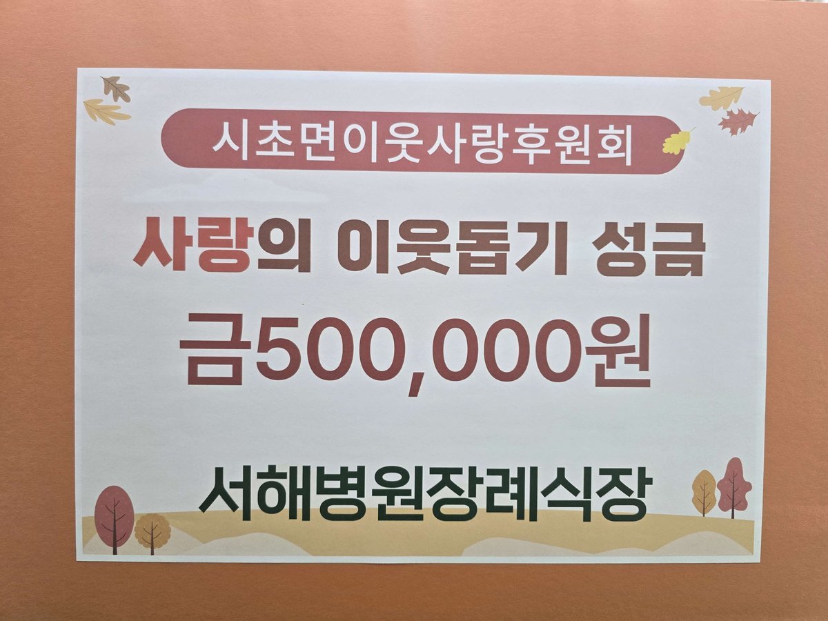 [충청중심뉴스] 서해병원장례식장은 지역의 어려운 이웃을 돕기 위해 시초면이웃사랑후원회에 성금 50만원을 기탁했다.