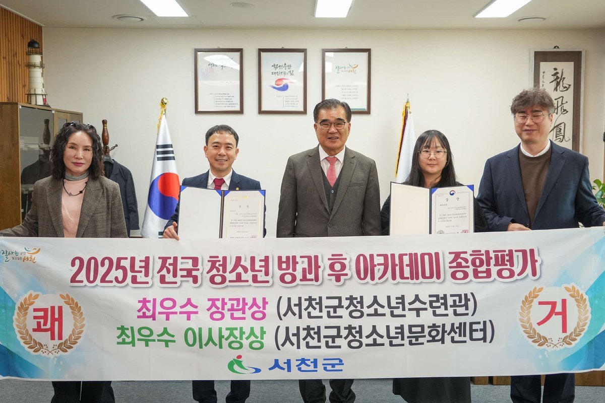 [충청중심뉴스] 서천군이 운영하는 서천군청소년수련관과 서천군청소년문화센터가 지난달 28일 성평등가족부와 한국청소년진흥원이 실시한 2025년 전국 청소년 방과후 아카데미 종합평가에서 나란히 최우수상을 수상했다.