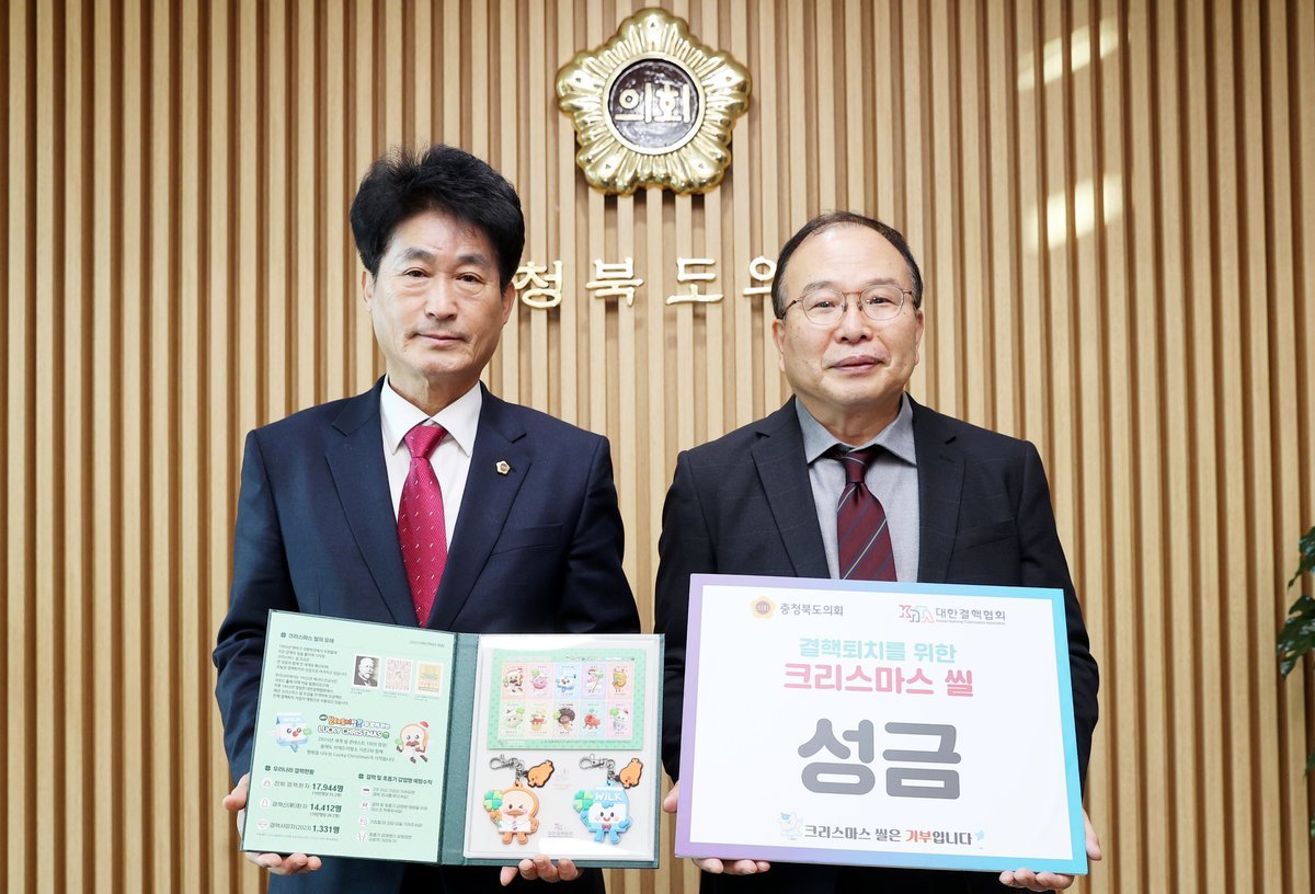 도의회는 9일 의장실에서 이양섭 의장과 안광무 대한결핵협회 충북지부 회장 등이 참석한 가운데 2025년 크리스마스 씰 증정식을 갖고 충북지부에 특별성금을 전달했다.