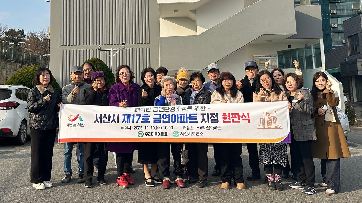 [충청중심뉴스] 서산시는 10일‘우리마을아파트’를 금연아파트로 지정하고 현판식을 개최해 공동주택 내 간접흡연을 예방하고 건강한 생활환경을 조성하겠다는 의지를 밝혔다.