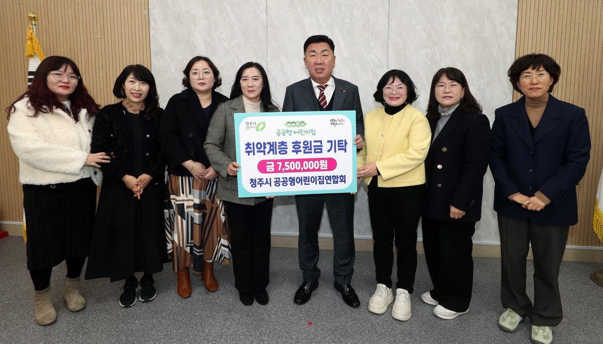 [충청중심뉴스] 청주시 공공형어린이집연합회는 10일 청주시청을 방문해 지역 취약계층의 안전한 환경 조성을 위한 후원금 750만원을 기탁했다.