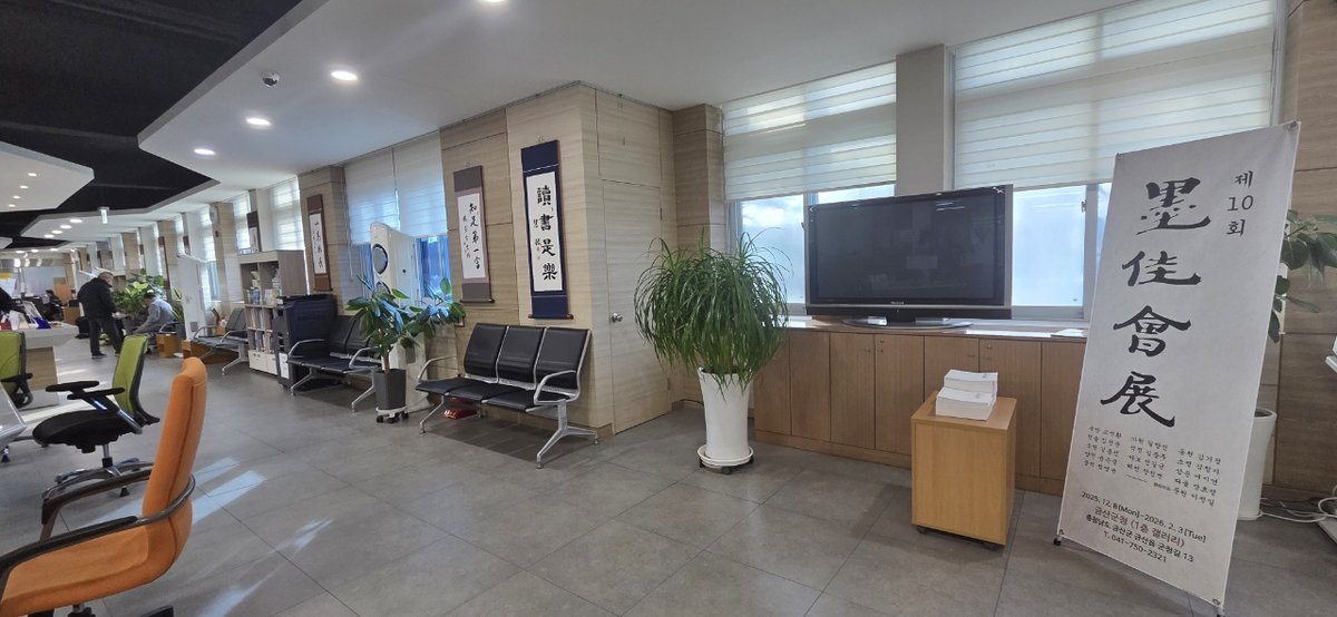 [충청중심뉴스] 금산군청 민원실 갤러리에서 진행 중인 제10회 묵가회전이 겨울철 군청을 찾는 주민들에게 잔잔한 문화적 울림을 전하고 있다.