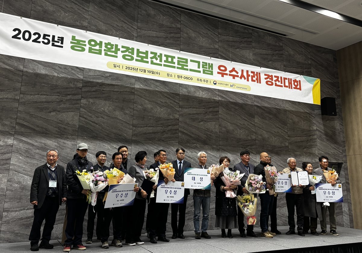 [충청중심뉴스] 충남도는 지난 10일 청주 오스코에서 열린 농림축산식품부 주최, 한국농어촌공사 주관 ‘2025년 농업환경 보전 프로그램 우수사례 경진대회’에서 전국 39개 마을 가운데 ‘보령시 소양마을’이 대상을, ‘홍성군 화신·모전마을’이 우수상을 받았다고 11일 밝혔다.