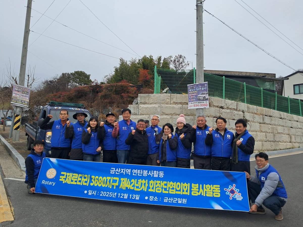 [충청중심뉴스] 국제로타리3680지구 42년차 회장단은 지난 13일 금산군 금산읍의 어려운 이웃을 위해 연탄나눔 봉사에 나섰다.