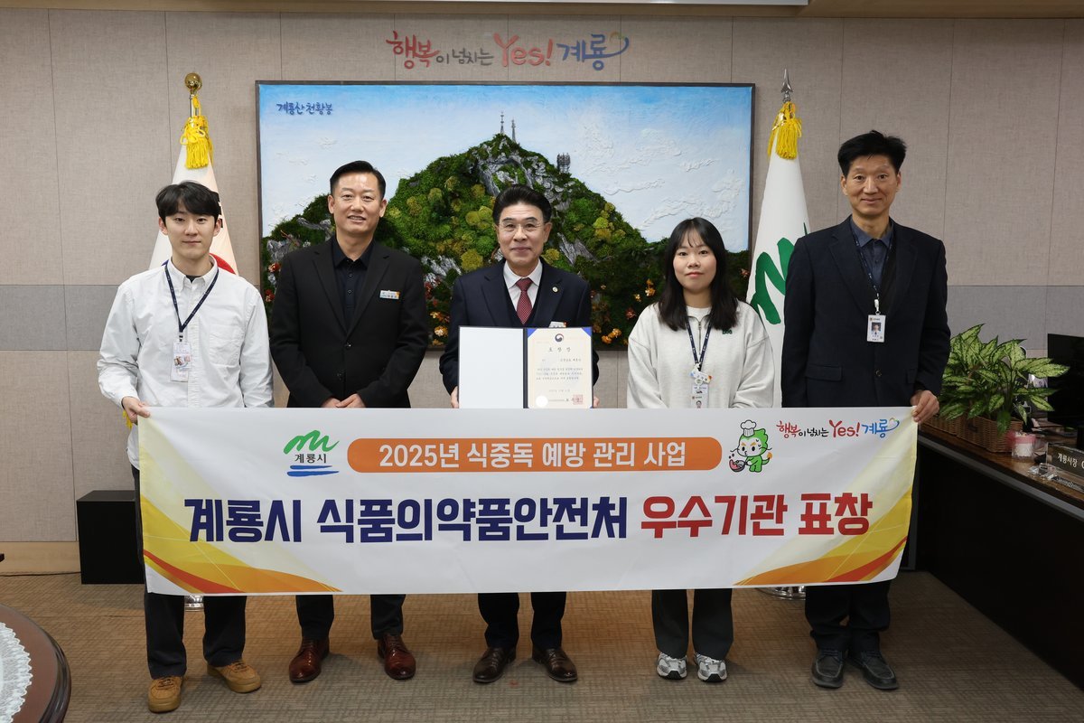 [충청중심뉴스] 계룡시는 ‘2025년 식중독 예방관리 사업 평가’에서 우수 기관으로 선정돼, 지난 12일 식품의약품안전처가 주최한 ‘전국 식중독 예방관리 역량강화 워크숍’에서 식품의약품안전처장 표창을 수상했다고 밝혔다.