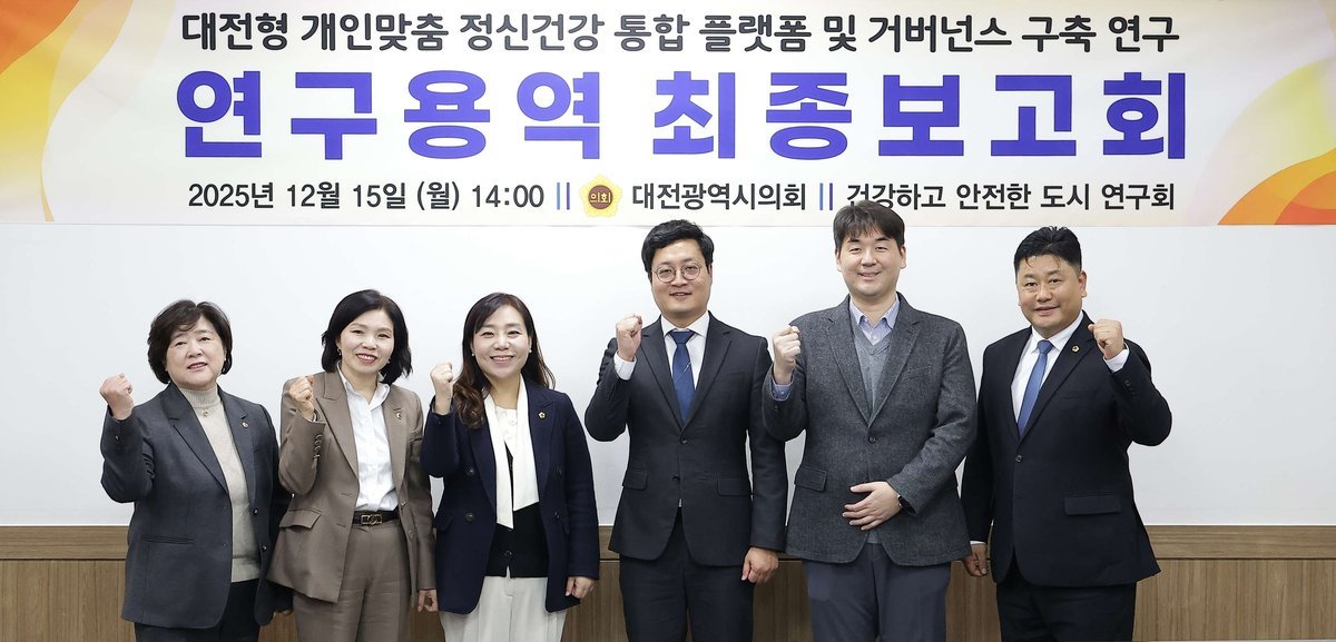 [충청중심뉴스] 대전시의회 ‘건강하고 안전한 도시연구회’는 15일 시의회 공감실에서 ‘대전형 개인맞춤 정신건강 통합 플랫폼 및 거버넌스 구축’연구 용역 최종 보고회를 개최했다.