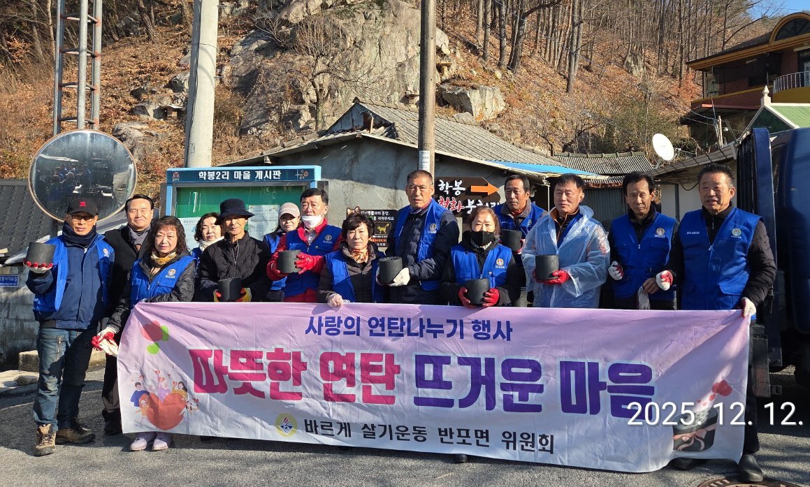 [충청중심뉴스] 공주시 반포면 바르게살기위원회는 지난 12일 관내 취약계층을 대상으로 연탄 나눔 봉사를 진행했다.