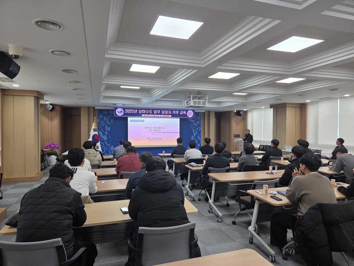 이날 교육은 한국수도경영연구소 김길복 소장을 강사로 초빙해 지방 상·하수도 공기업 현황과 경영상 문제점, 효율적인 경영 방안, 정부의 상·하수도 정책 방향 등을 중심으로 실무 사례 위주로 진행됐다.
