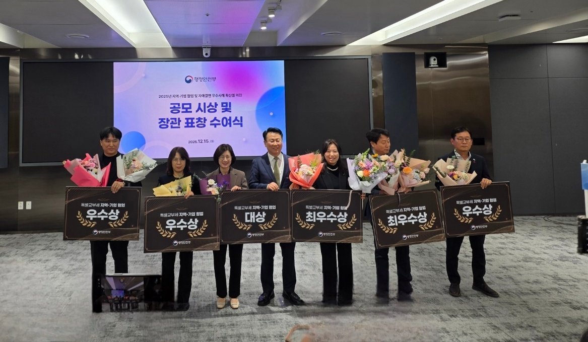[충청중심뉴스] 세종특별자치시가 지난 15일 행정안전부 주관 ‘지역-기업 협업 우수사례 공모전’에서 최우수상을 수상해 1억 5,000만 원의 특별교부세를 받는다고 밝혔다.