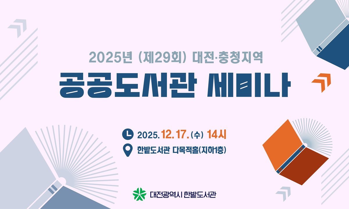 [충청중심뉴스] 한밭도서관은 17일 오후 2시, 한밭도서관 다목적홀에서 대전충청지역 공공도서관 사서 및 직원을 대상으로 ‘2025 대전․충청지역 공공도서관 세미나’를 개최한다.