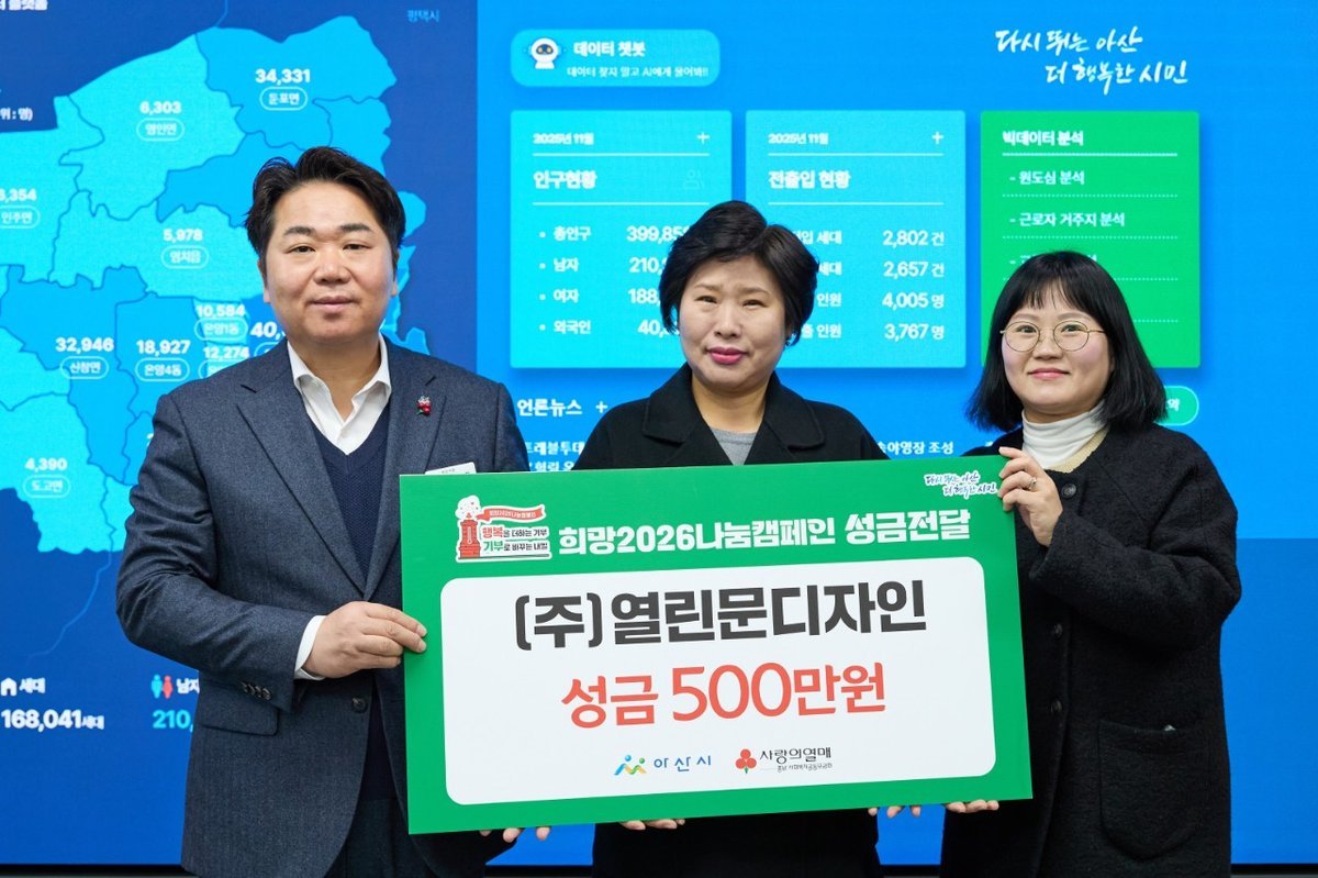 이어 “이러한 아름다운 기부 문화가 아산시 전역으로 확산되어 ‘기부로 바꾸는 아산’이 실현되길 기대한다”며 “모두가 행복을 나누는 희망찬 2026년을 함께 만들어가자”고 덧붙였다.