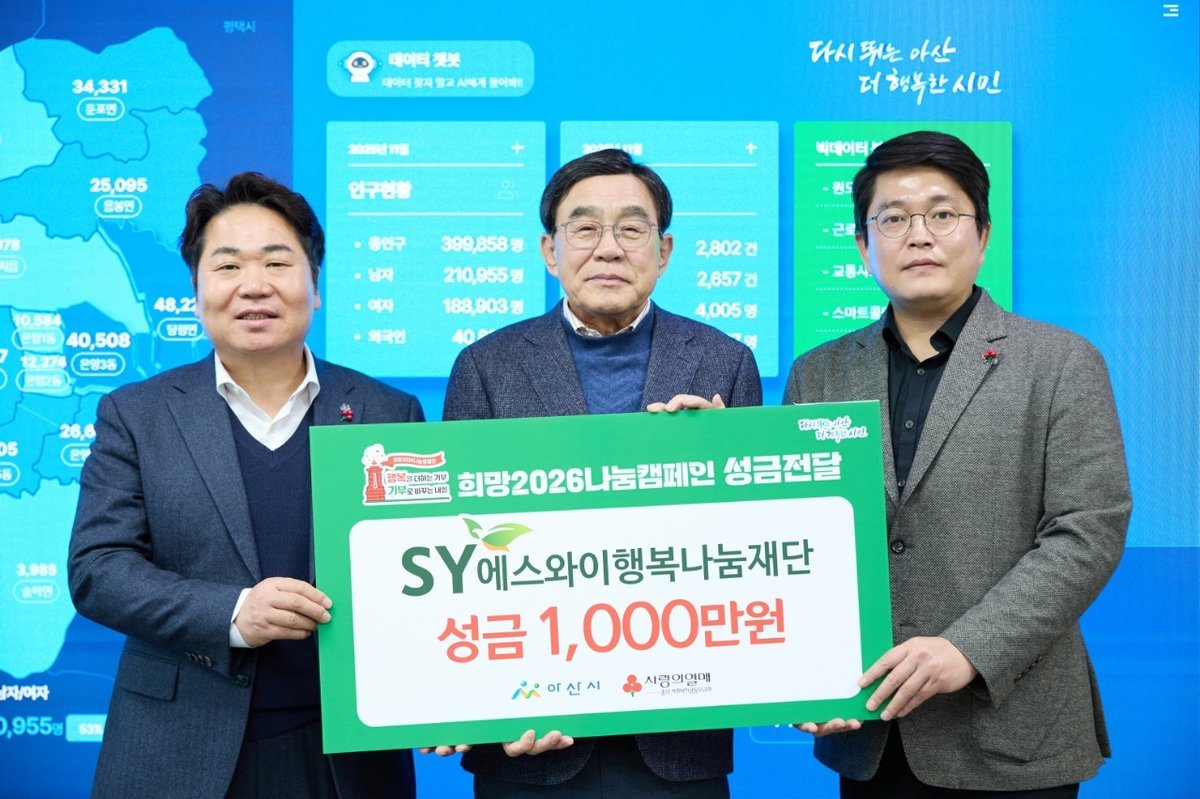 [충청중심뉴스] 에스와이행복나눔재단이 15일 아산시에 방문해 ‘희망2026나눔캠페인’성금 1000만 원을 기탁했다.