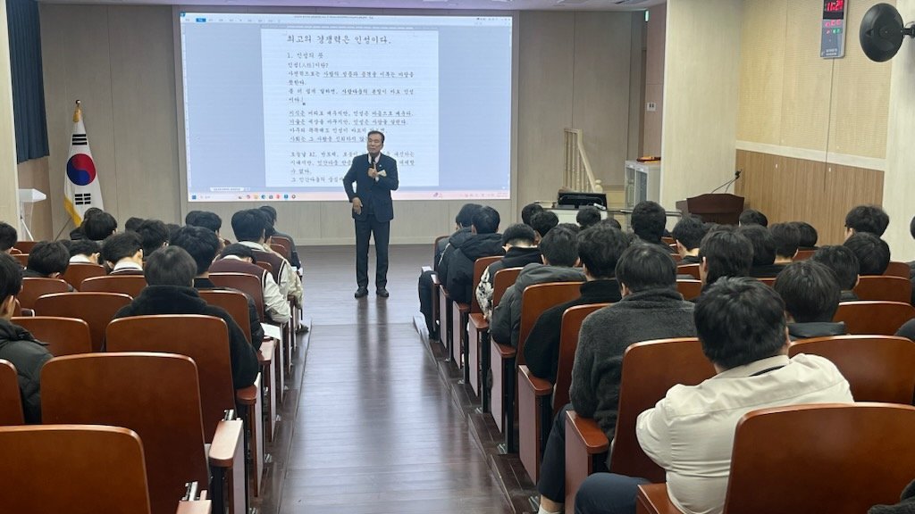 이번 특강은 인공지능·반도체·로봇 등 첨단기술이 빠르게 발전하는 시대에 기술 역량 못지않게 중요한 인간다움과 인성의 가치를 되새기고, 미래 산업을 이끌어갈 학생들에게 올바른 삶의 기준과 태도를 제시하기 위해 마련됐다.