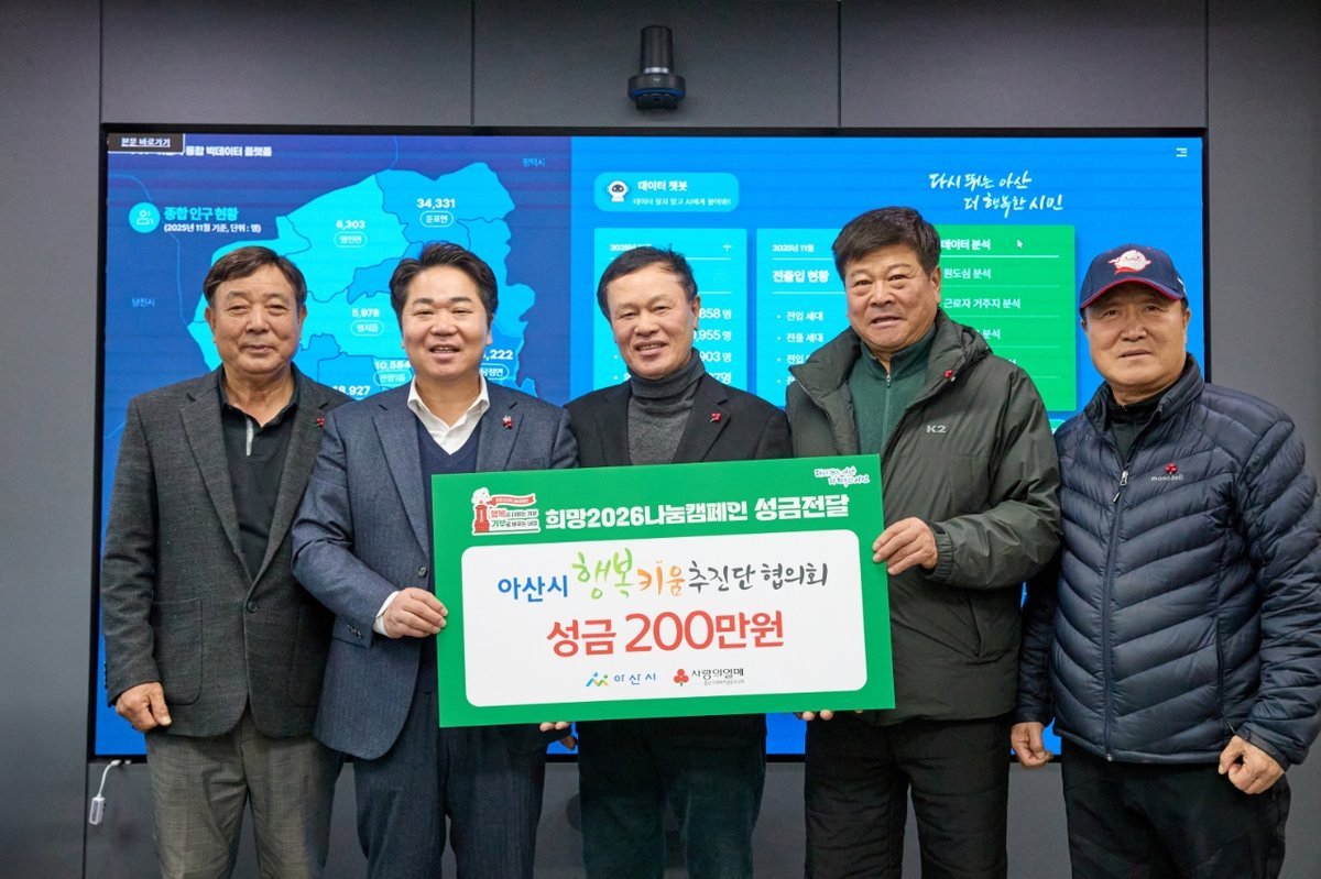 우재원 아산시 행복키움추진단협의회 단장은 “작은 씨앗 하나가 모여 큰 숲을 이루듯, 우리의 나눔이 지역 곳곳에 행복의 꽃을 피울 수 있기를 바라는 마음으로 성금을 마련했다”며 “앞으로도 이웃과 함께 행복을 나누는 따뜻한 동행을 이어가겠다”고 밝혔다.