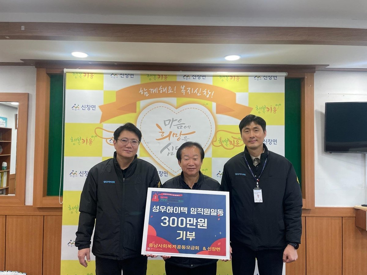 지민영 신창면장은 “매년 임직원들이 한마음으로 성금을 모아 기부해 주셔서 감사드린다”며 “아산성우하이텍의 지속적인 사회공헌 활동이 지역사회에 큰 힘이 되고 있다”고 전했다.