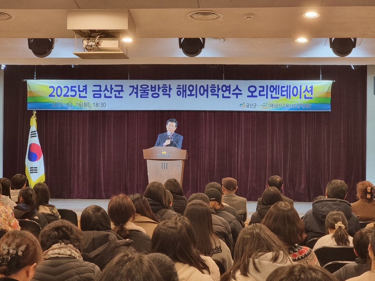[충청중심뉴스] 금산군의 대표적인 글로벌 인재육성 프로그램인 초중생 해외어학연수 출발에 앞서 지난 16일 금산다락원 소공연장에서 학생과 학부모 등 160여 명을 대상으로 사전 오리엔테이션을 개최했다.