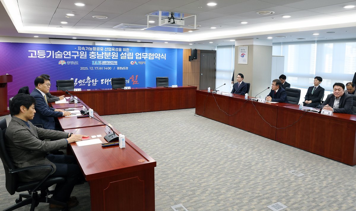 [충청중심뉴스] 충남도는 17일 충남도청 상황실에서 지속가능항공유 산업육성을 위한 ‘고등기술연구원 충남분원 설립’ 업무협약을 체결했다고 밝혔다.