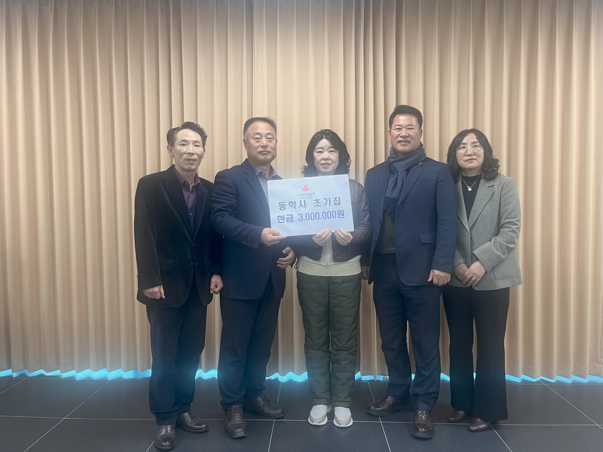[충청중심뉴스] 공주시 반포면에 있는 동학사 초가집이 지역사회 나눔 문화 확산을 위해 성금 300만 원을 지난 17일 반포면 행정복지센터에 기탁했다.