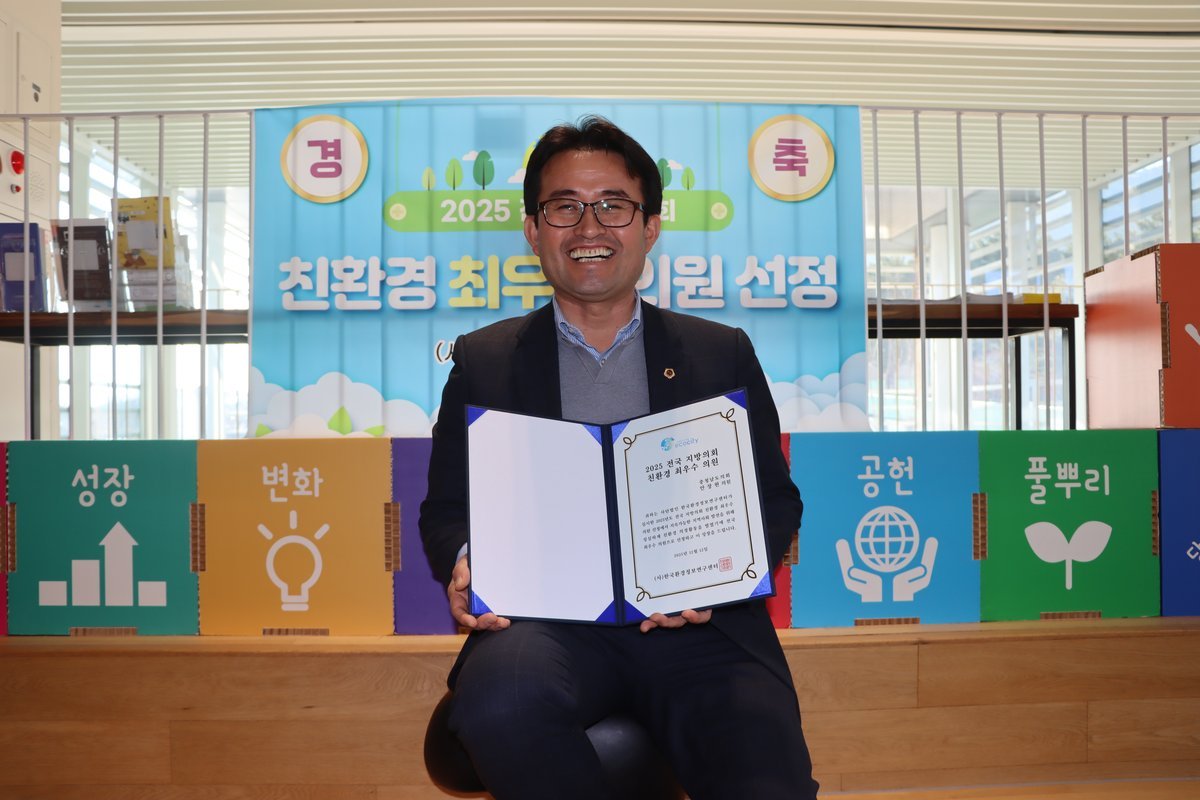 [충청중심뉴스] 안장헌 충남도의원이 2년 연속 한국환경정보센터가 주최한 ‘2025 전국지방의회 친환경 최우수의원’으로 선정됐다.