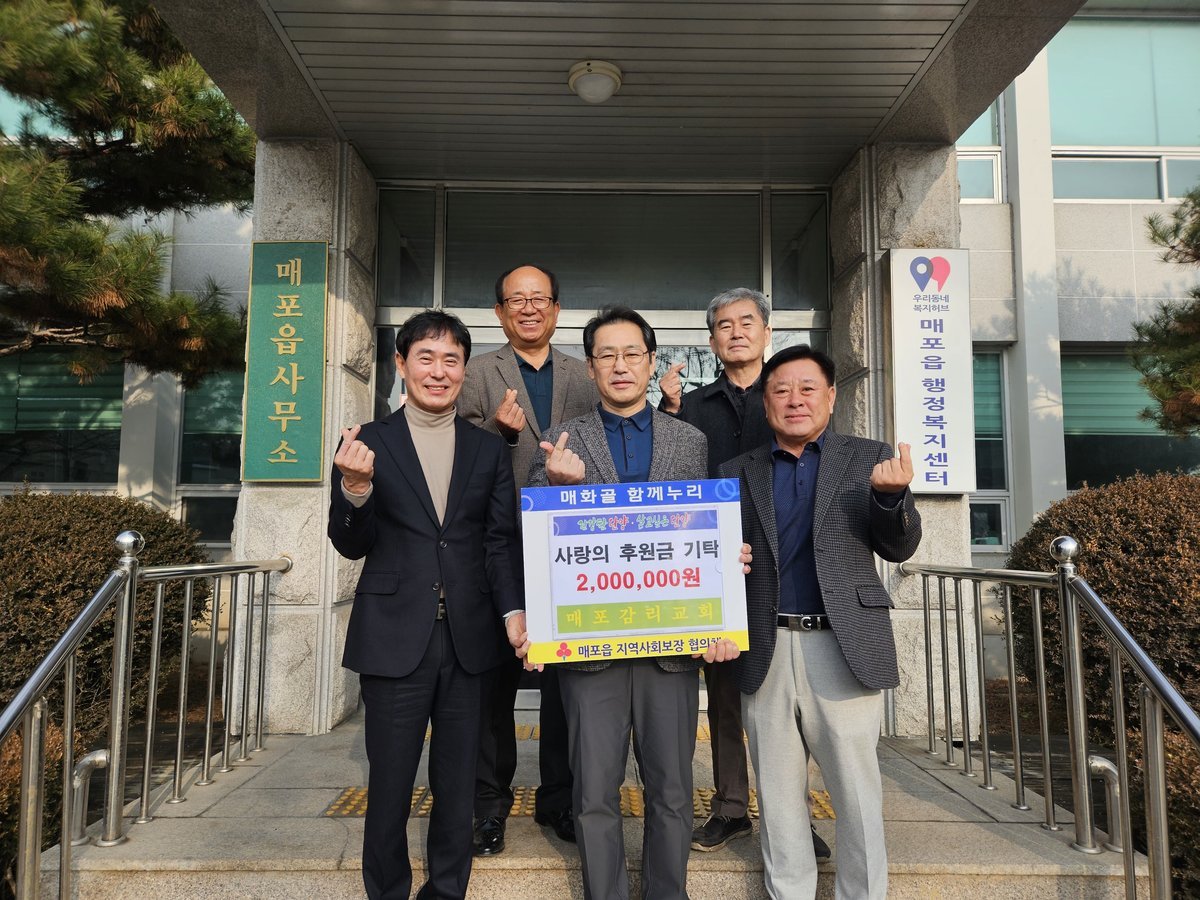 매포감리교회는 매년 성금 기탁과 봉사활동을 통해 지역사회와 함께하는 나눔을 꾸준히 이어오고 있으며, 이번 성금 역시 이웃사랑을 실천하고 지역 공동체에 온기를 전하고자 마련됐다.