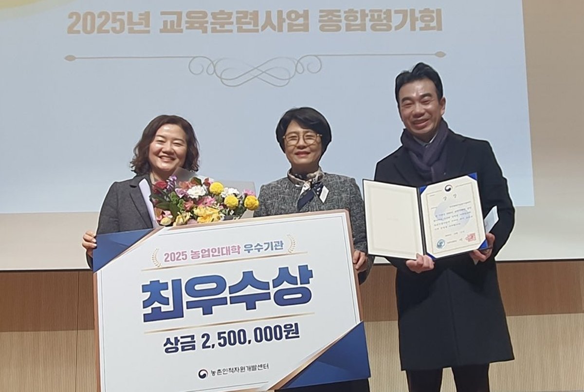 [충청중심뉴스] 대전시 농업기술센터는 농촌진흥청이 주관한 ‘2025년 전문지도연구회 우수기관 평가’에서 대상과 ‘2025년 농업인대학 우수기관 선정’에서 최우수상을 동시에 수상했다.