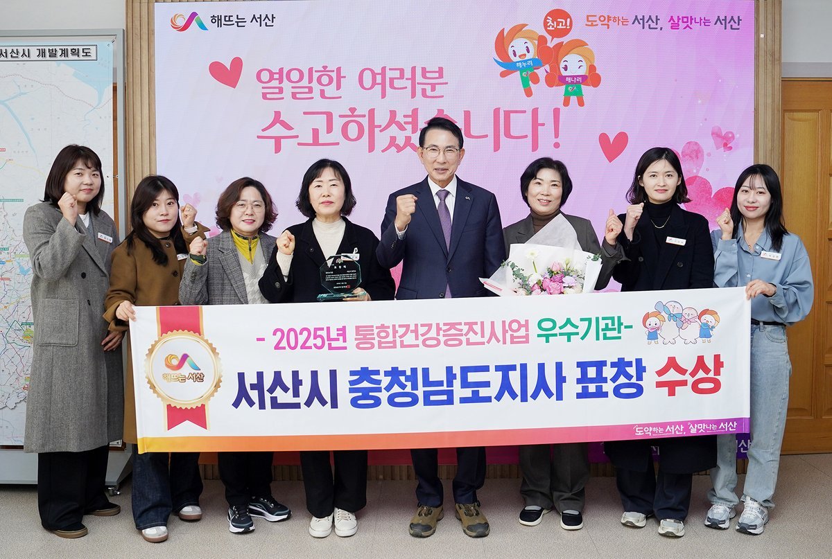 [충청중심뉴스] 충남 서산시는 2025년 통합건강증진사업 우수기관으로 선정돼 충청남도지사 표창을 받았다고 밝혔다.
