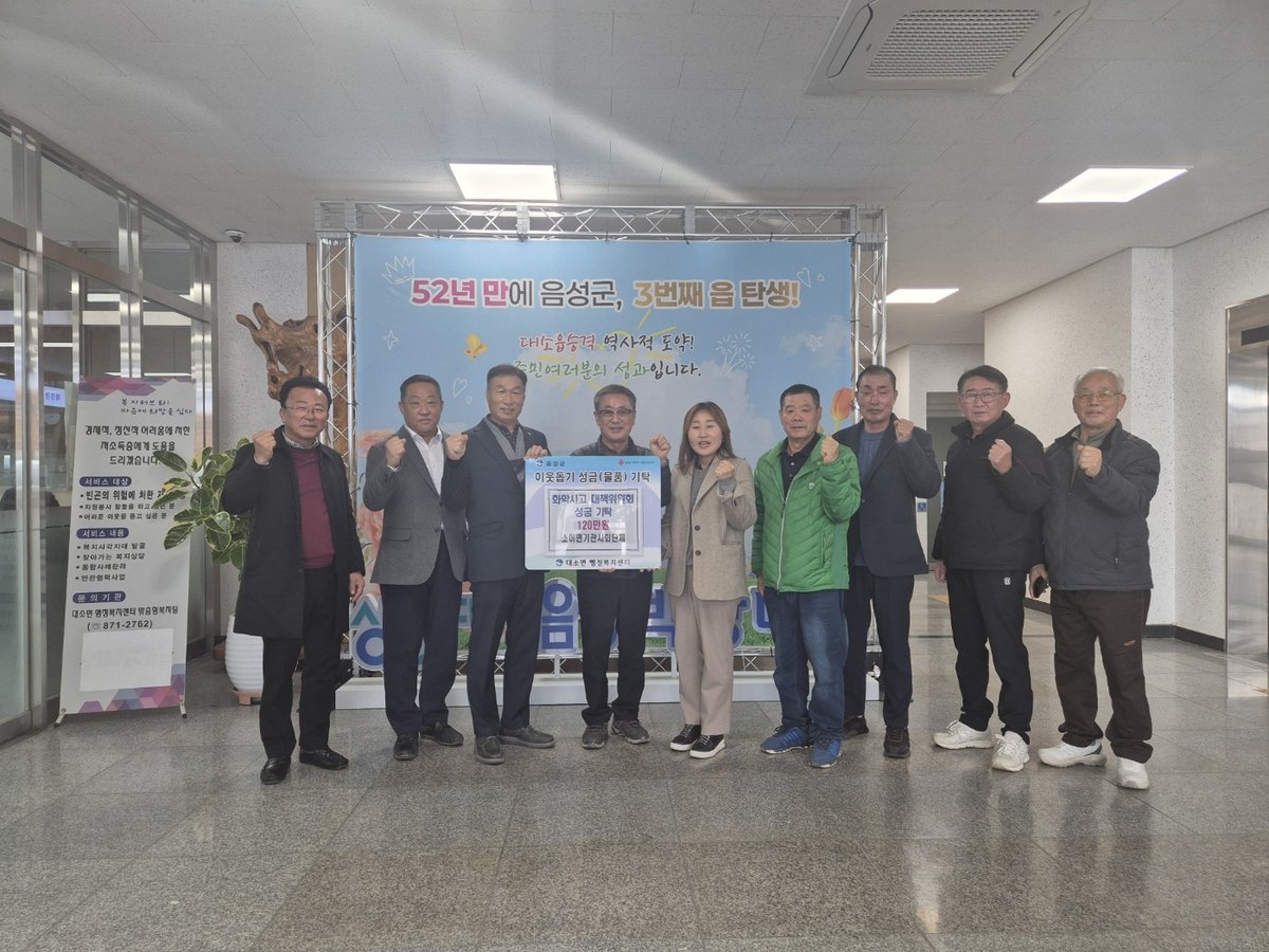 신관우 대소면 화학사고 피해대책위원장은 “어려운 상황 속에서도 이웃 면에서 마음을 모아 주신 것 자체가 큰 힘이 된다”며 “전달해 주신 소중한 성금은 의미 있는 일에 잘 활용하겠다”고 밝혔다.