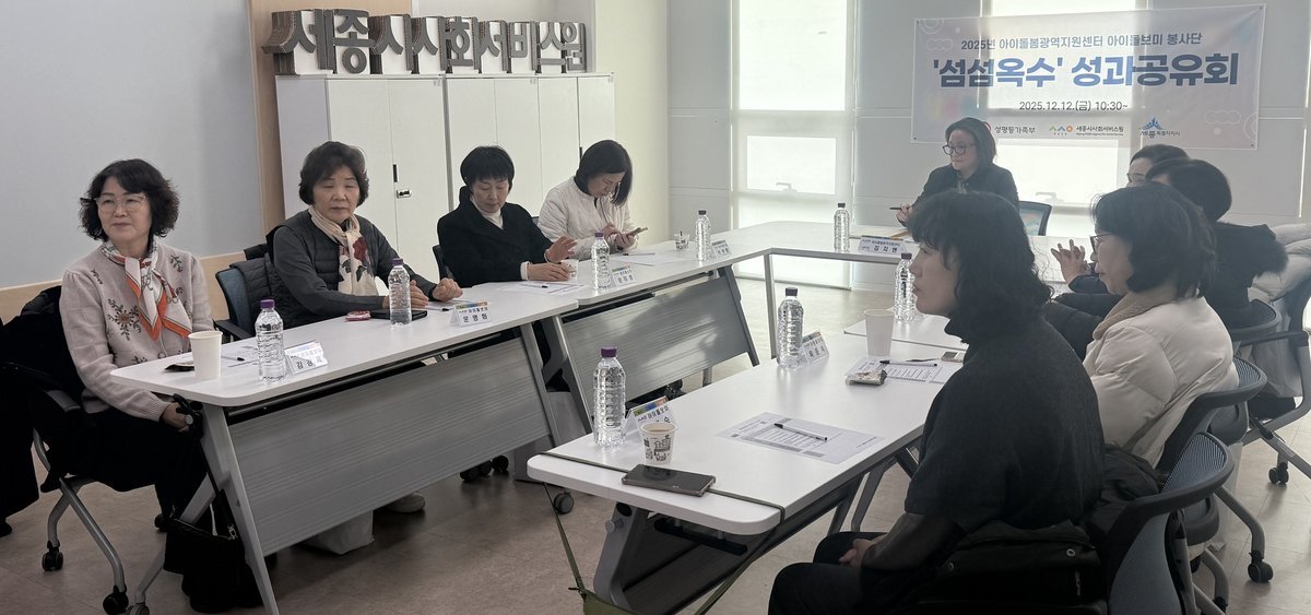 [충청중심뉴스] 세종시사회서비스원이 운영하는 세종시 아이돌봄광역지원센터는 지난 12일 세종시사회서비스원 회의실에서 ‘아이돌보미 봉사단 섬섬옥수 2기 성과공유회’를 개최했다.