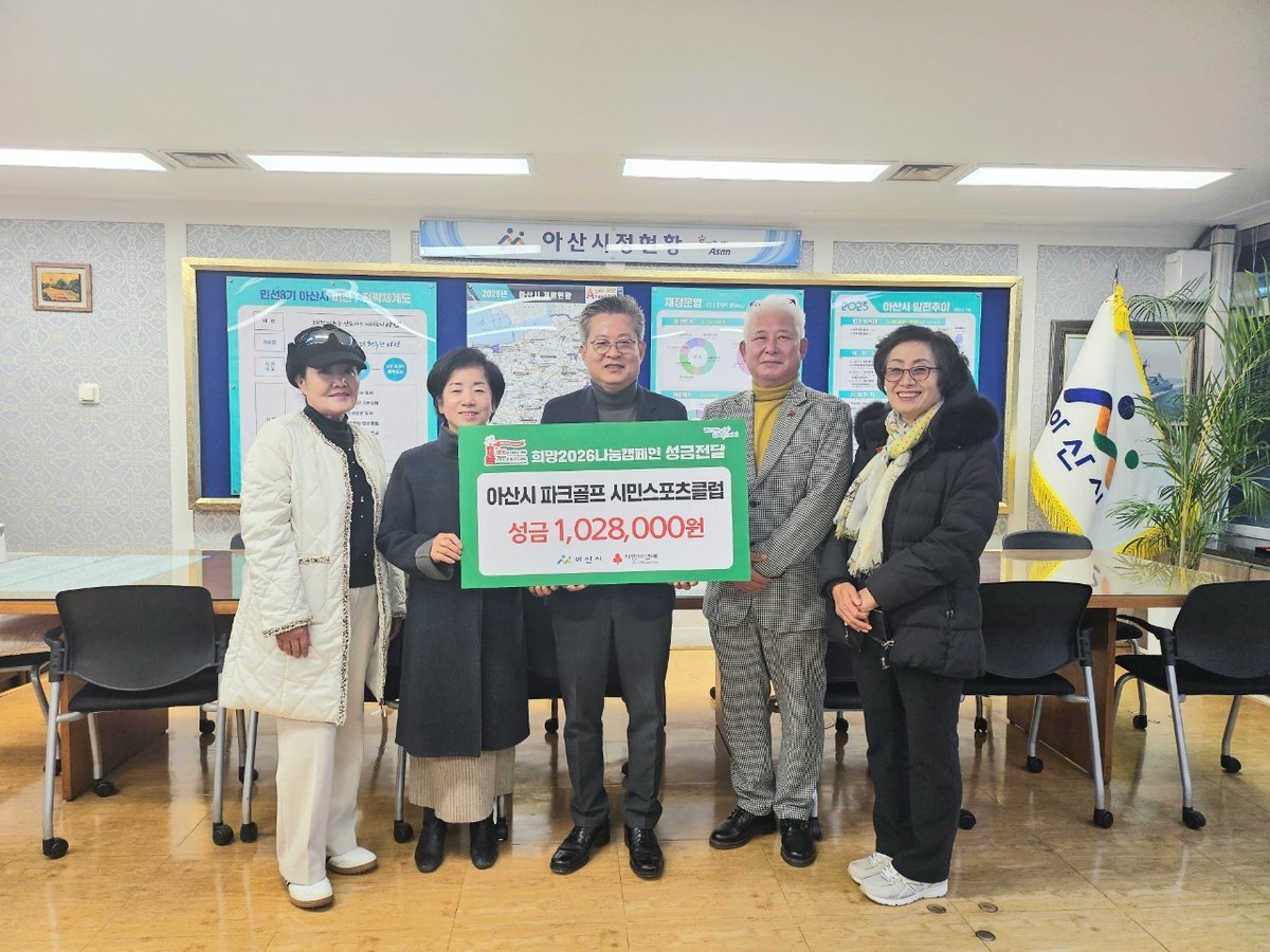 [충청중심뉴스] 아산시 파크골프 시민스포츠클럽이 19일 아산시를 방문해 ‘희망2026나눔캠페인’성금 102만 8천 원을 기탁했다.