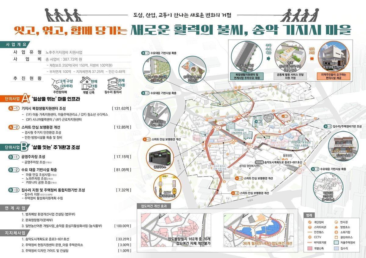 시는 기지시지구에 250억 원을 투입해 2026년부터 2030년까지 △복합생활지원센터 건립 △커뮤니티 공원 조성 △도로 확장 △주차장 조성 △마을 안길 정비 등 생활환경 개선 △주민주도 주택개량 △스마트보행환경 조성 등 정주환경 혁신 사업을 진행할 예정이다.