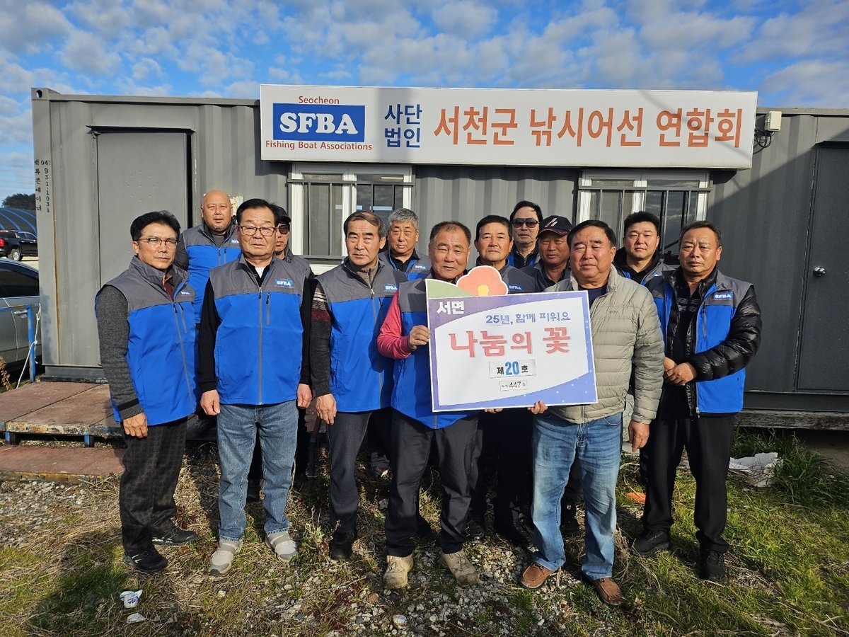 [충청중심뉴스] 서천군 낚시어선 연합회는 지난 19일 서면사랑후원회에 후원금 100만 원을 기부하며 서면 ‘나눔의 꽃 20호’로 선정됐다.