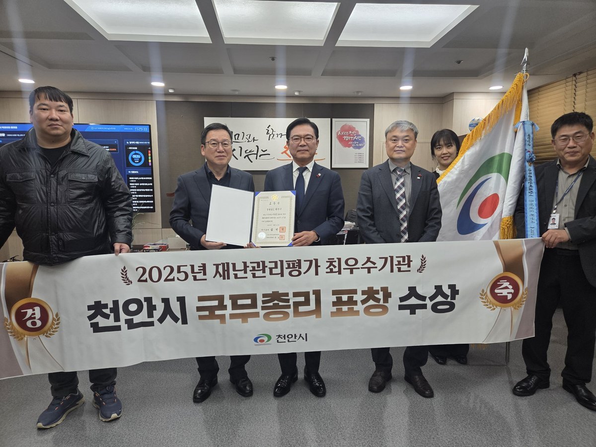[충청중심뉴스] 천안시가 행정안전부 주관 ‘2025년 재난관리평가’에서 우수기관에 선정돼 국무총리 표창을 받았다고 23일 밝혔다.