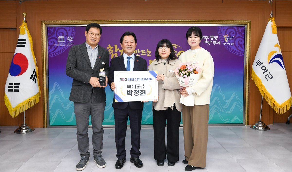 박정현 부여군수는 “청소년이 직접 선정한 의미 있는 상을 받게 되어 매우 기쁘다.”라며, “앞으로도 청소년들의 건강한 성장을 돕고 꿈을 마음껏 펼칠 수 있도록 지속해서 지원할 것”이라고 소감을 밝혔다.
