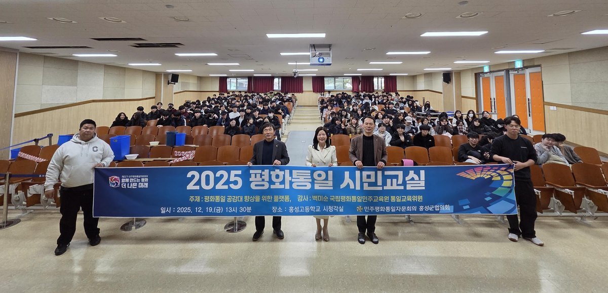 [충청중심뉴스] 민주평화통일자문회의 홍성군협의회가 지난 19일 김명률 청년분과위원장의 진행으로, 홍성고등학교 2학년 학생 및 교사 250여 명이 참석한 가운데 ‘2025 평화통일 시민교실’을 개최했다고 밝혔다.