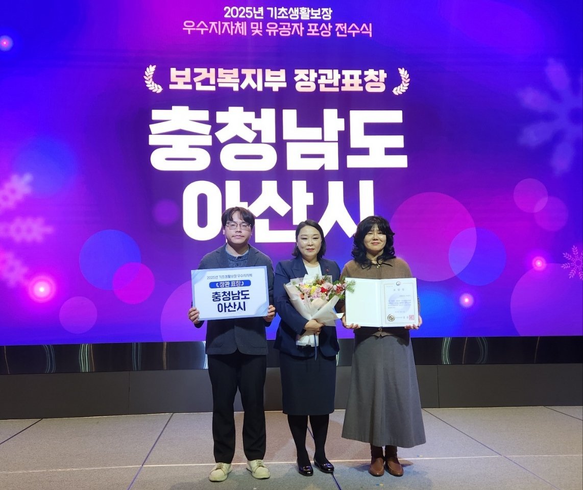 [충청중심뉴스] 아산시는 보건복지부에서 주관하는 ‘2025년도 기초생활보장 분야’에서 우수 지자체로 선정돼 장관 표창을 받았다고 밝혔다.