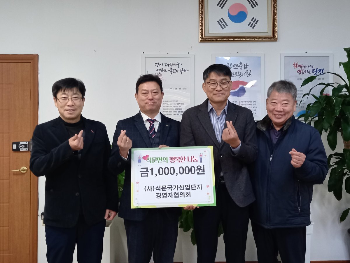 이날 전달한 성금은 석문국가산업단지에 입주해 있는 경영자들이 석문의 어려운 이웃을 위해 모은 것으로 관내 복지 사각지대 및 저소득 가정 등을 돕는 사업비로 사용할 예정이다.