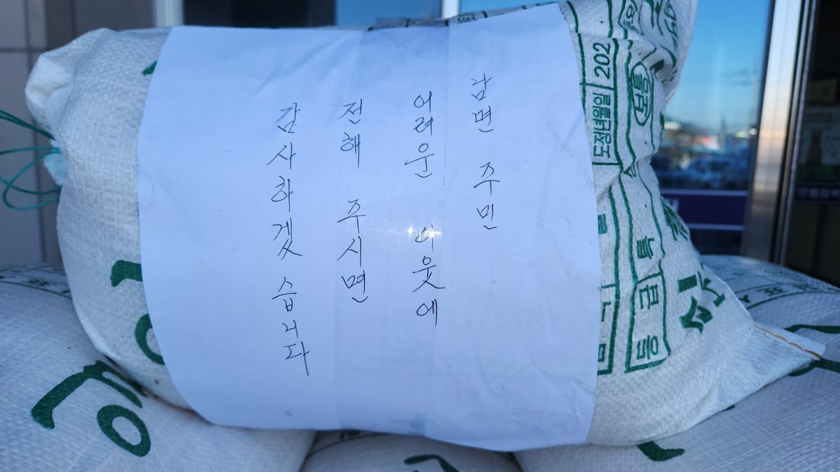 쌀과 함께 놓인 종이에는 “남면 주민 어려운 이웃에 전해 주시면 감사하겠습니다.”라는 짧은 손 글씨 문구가 적혀 있었으며, 기부자는 자신의 이름이나 신분을 밝히지 않은 채 조용히 발길을 돌린 것으로 전해졌다.