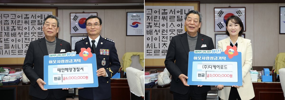 [충청중심뉴스] 태안해양경찰서와 ㈜디케이로드가 태안군에 성금을 기탁하며 이웃사랑의 마음을 전했다.