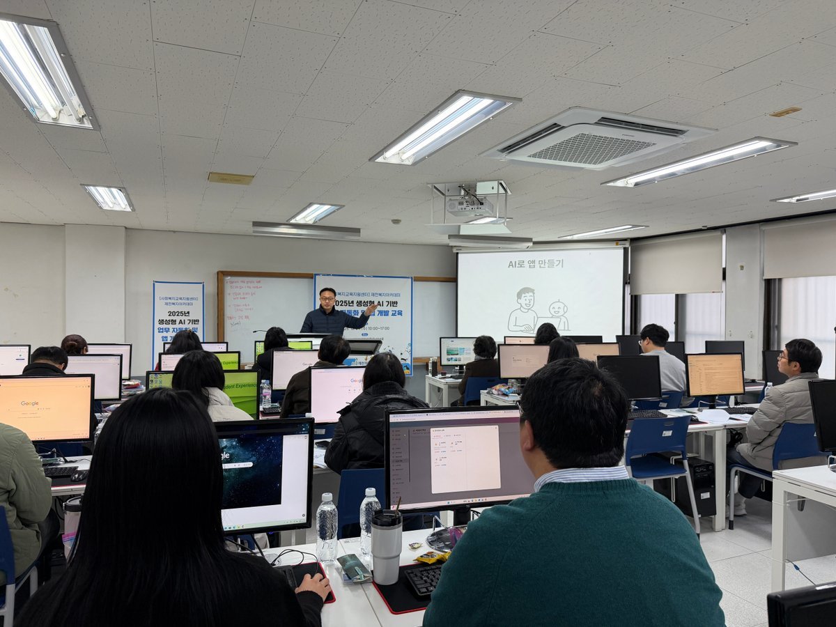 [충청중심뉴스] 제천복지재단은 지난 24일, 제천 관내 사회복지종사자 20여 명을 대상으로 ‘2025년 생성형 AI 기반 업무 자동화 및 앱 개발 교육’을 실시했다.
