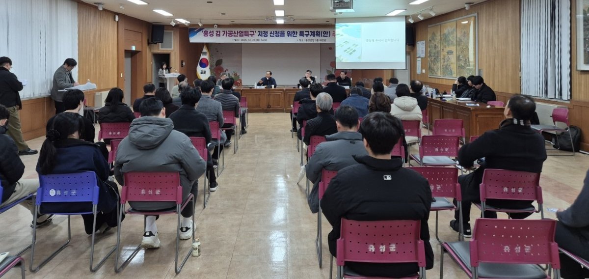 [충청중심뉴스] 홍성군은 ‘홍성 김 가공산업특구’지정 신청을 위해 수립 중인 특구계획과 관련해 주민 의견을 수렴하는 주민공청회를 지난 23일 개최했다.