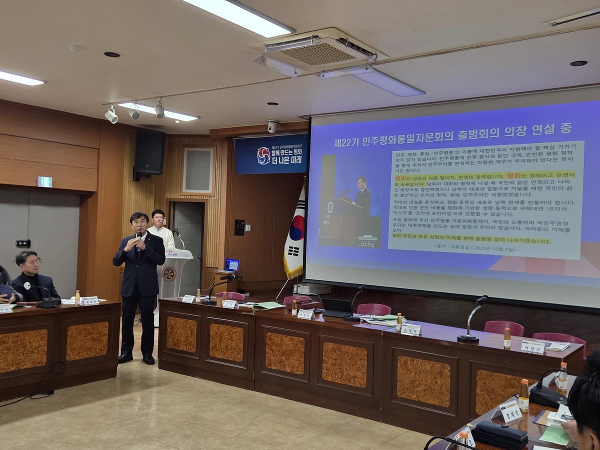 [충청중심뉴스] 민주평화통일자문회의 홍성군협의회는 지난 24일 홍성군청 대강당에서 자문위원 50명이 참석한 가운데‘화해·협력의 남북 관계 재정립을 위한 정책 방향’을 주제로‘2025년 4분기 정기회의’를 개최했다.