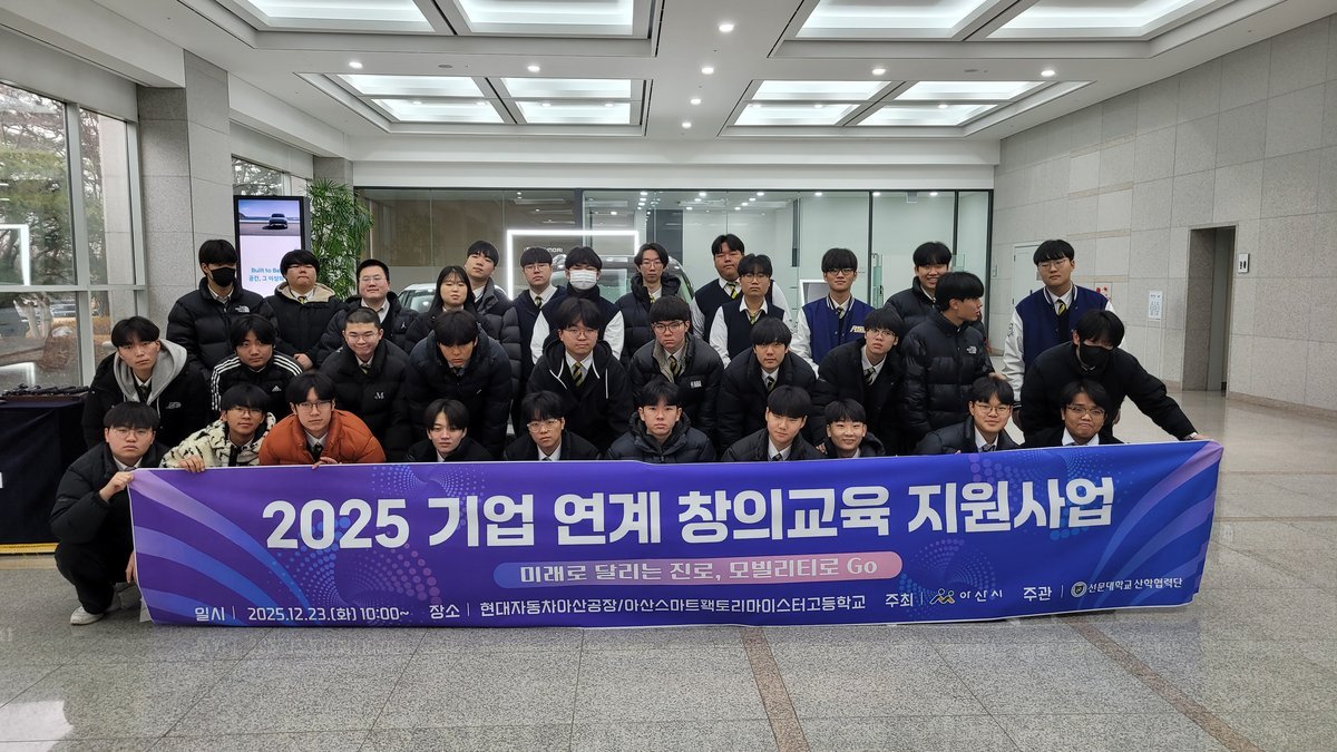 [충청중심뉴스] 아산스마트팩토리마이스터고 는 23일 현대자동차 아산공장에서 2 학년 68명 학생들이 “선문대학교 2025년 기업 연계 창의 교육 지원사업 ”의 일환으로 추진되는 「 현대자동차 아산공장 견학 및 ‘미래로 달리는 진로, 모빌리티로 Go!’모빌리티 진로 교육 」 프로그램에 참여했다고 전했다.