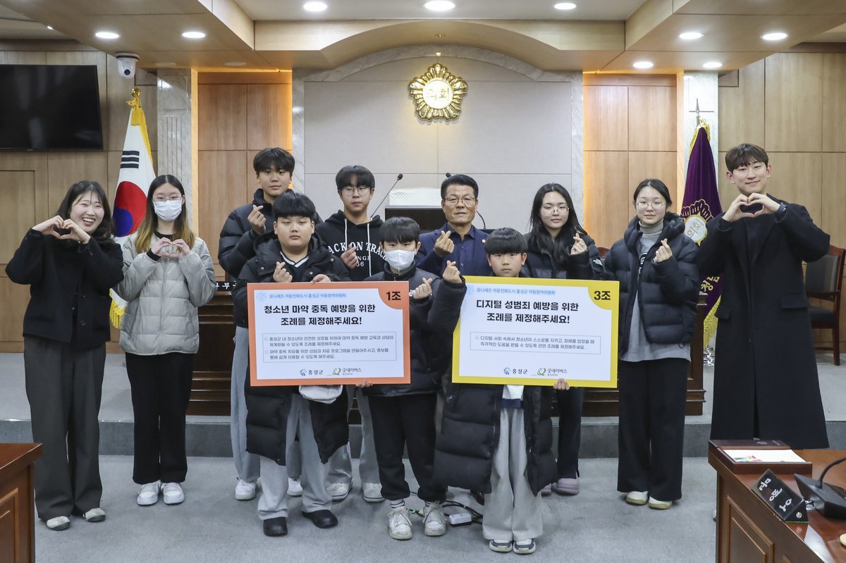 [충청중심뉴스] 제5기 홍성군 아동참여위원회가 지난 29일, 홍성군 의회를 방문해 △청소년 마약 중독 예방 관련 조례 제정 △디지털 성범죄 예방을 위한 조례 제정을 제안해 눈길을 끌고 있다.