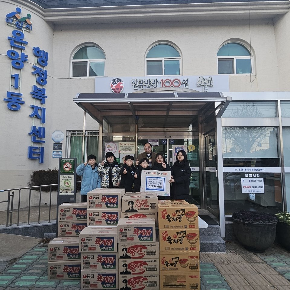 심현성 온양1동장은 “어린 학생들이 소외된 이웃을 공감하고 나눔을 실천한 모습이 매우 기특하고 감사하다”며 “이번 선행이 기부와 나눔 문화 확산의 계기가 되길 바란다”고 말했다.