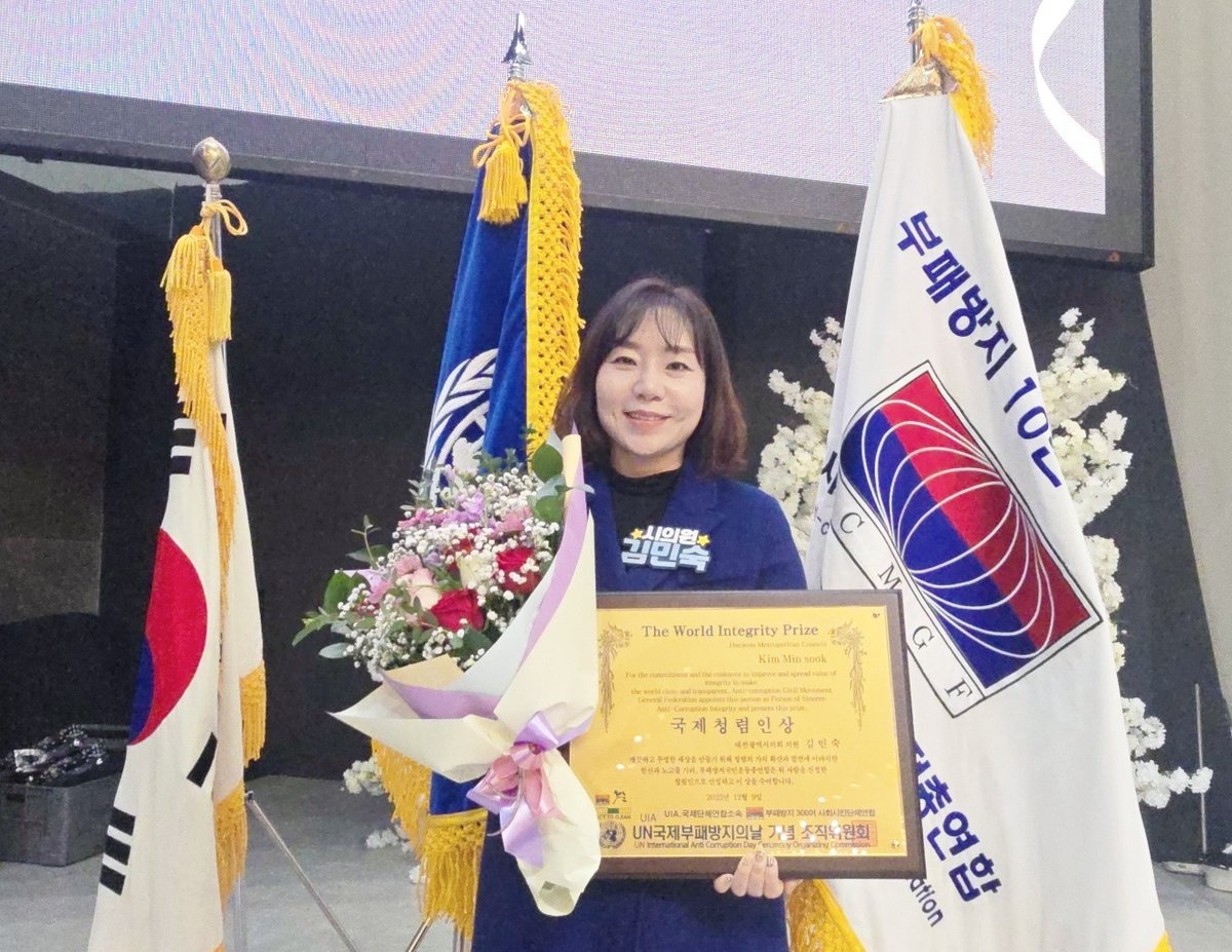 [충청중심뉴스] 대전광역시의회 김민숙 의원이 UN국제부패방지의 날 기념 ‘국제청렴인상’을 수상했다.