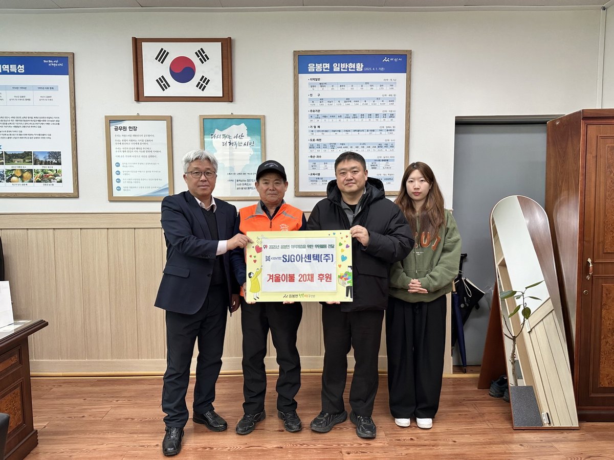 [충청중심뉴스] SJG아센텍㈜은 지난 30일 아산시 음봉면 행복키움추진단에 지역 내 취약계층을 위한 겨울이불 20채를 후원했다.