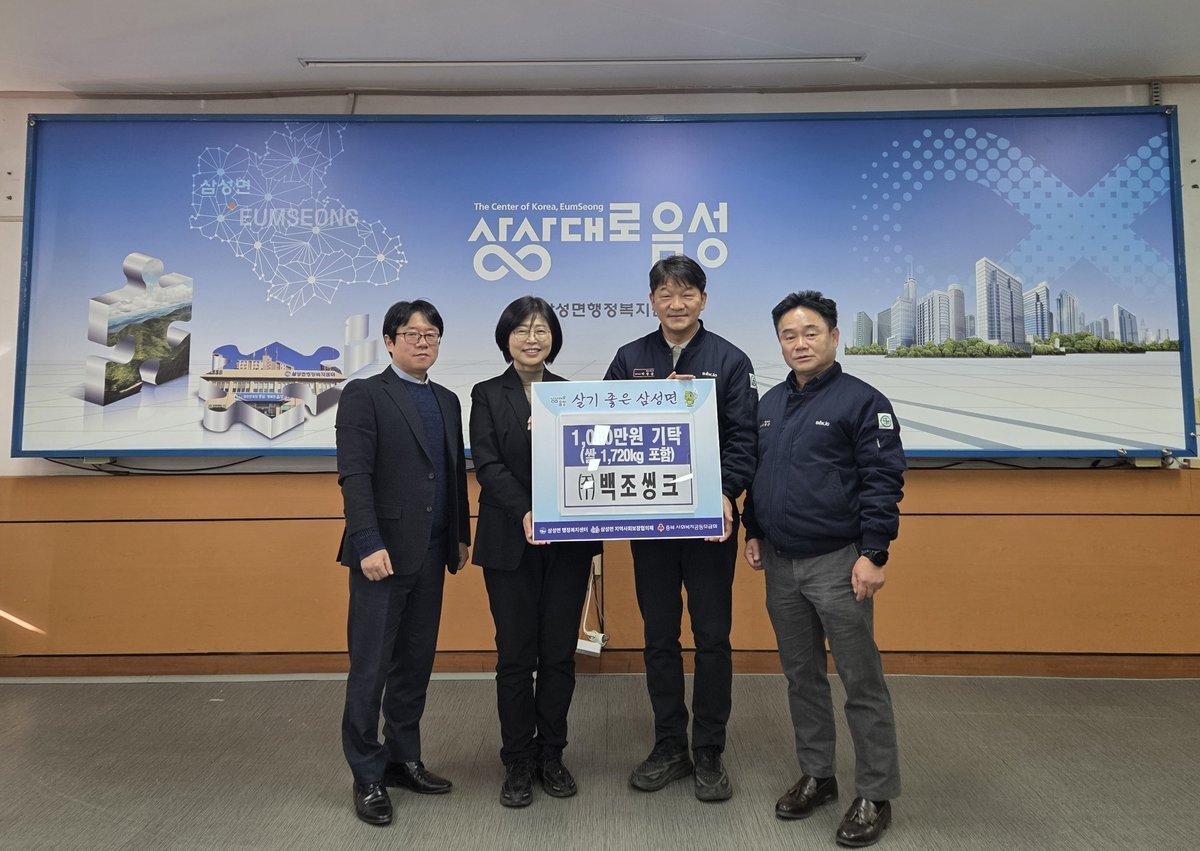 [충청중심뉴스] 음성군 삼성면에 소재한 ㈜백조씽크는 지난 30일 연말을 맞아 삼성면 내 경로당에 쌀 20kg 86포와 불우한 이웃들을 위해 성금 423만천원 등 총 1000만원 상당의 쌀과 성금을 기탁했다.