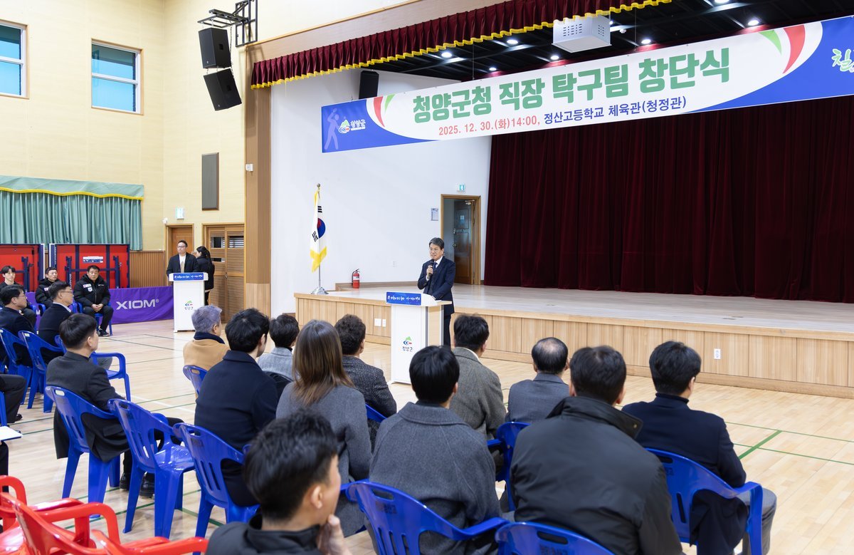 군은 지난 30일 정산고등학교 체육관에서 청양군청 직장운동경기부 탁구팀 창단식을 열고 선수단의 공식 출범을 알렸다.